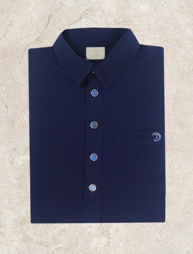 De Adab Layl Qamis brengt traditionele elegantie samen met een moderne twist. De diepe donkerblauwe kleur en de verfijnde overhemdkraag geven deze qamis een stijlvolle en verzorgde uitstraling, geschikt voor gebed en speciale gelegenheden.