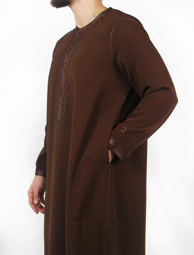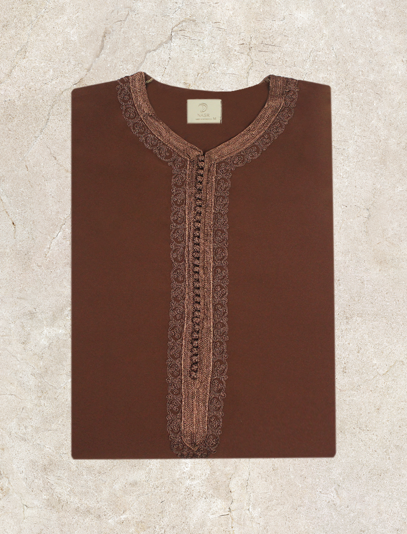De Shamaly Assembly in de kleur Earth is geïnspireerd op de traditionele marokkaanse kandora. De zachte, aardse kleur en het verfijnde ontwerp combineren klassieke elementen met moderne elegantie.
